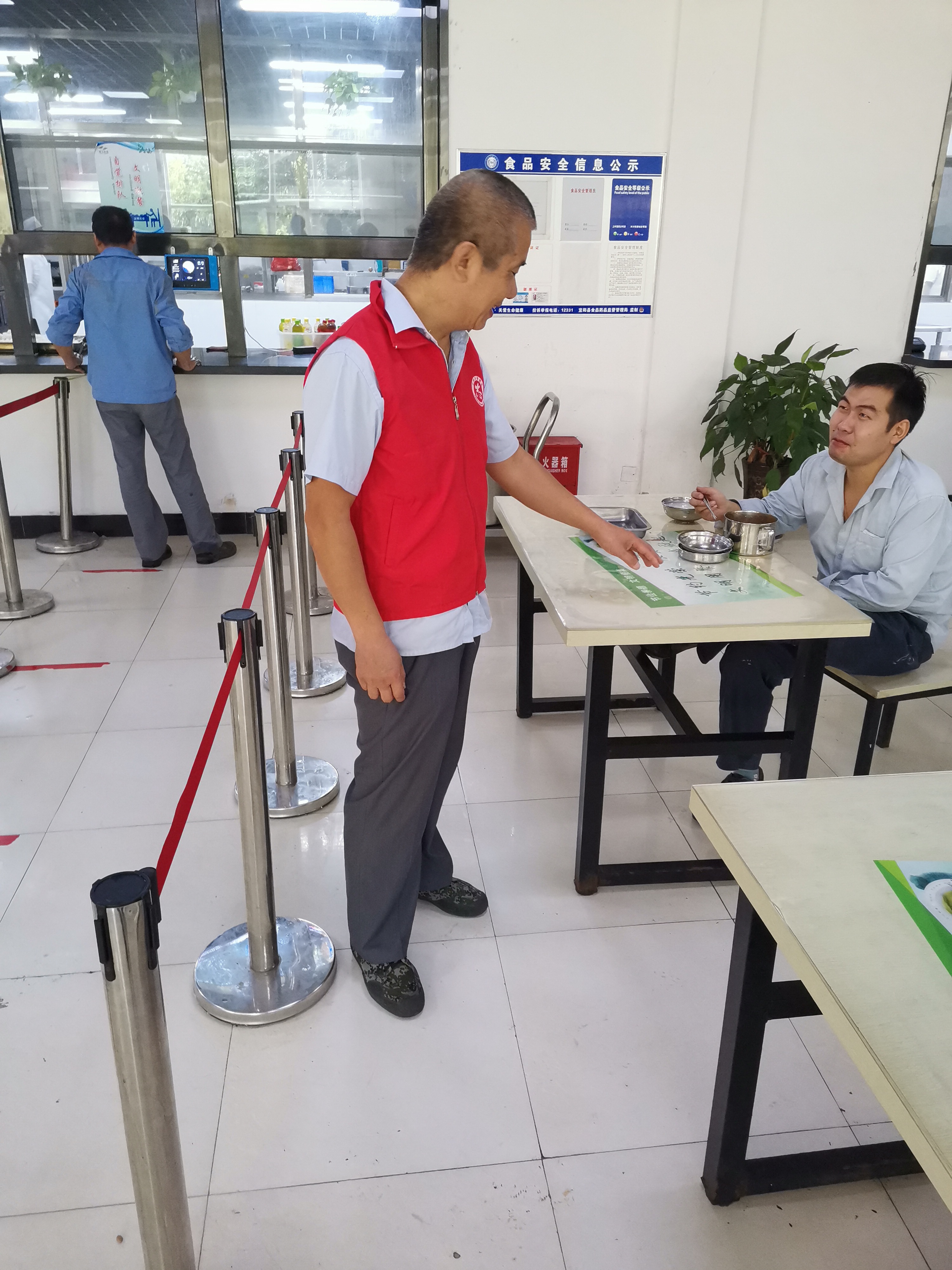 為了創(chuàng)造良好的就餐環(huán)境,在疫情防控不能放松的前提下,各黨支部抽調(diào)人員組成了 “文明餐桌志愿服務(wù)隊(duì)”,在中午就餐高峰期間對就餐不文明行為進(jìn)行監(jiān)督,主要是針對餐廳浪費(fèi)現(xiàn)象,職工面對面兩人或多人就餐情形;職工取餐不自覺排隊(duì)等情形進(jìn)行監(jiān)督并糾正。